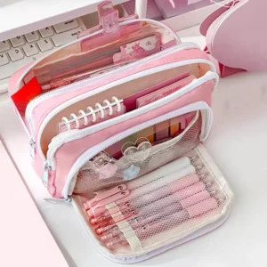 Sac à crayons rose de grande capacité pour fille, étuis scolaires esthétiques, porte-stylo coréen, fournitures scolaires pour étudiants